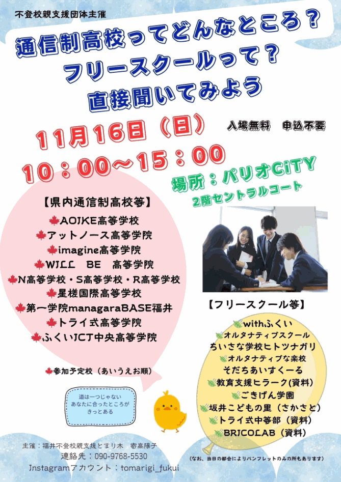 <お知らせ中学生>通信制フリースクール合同相談会について