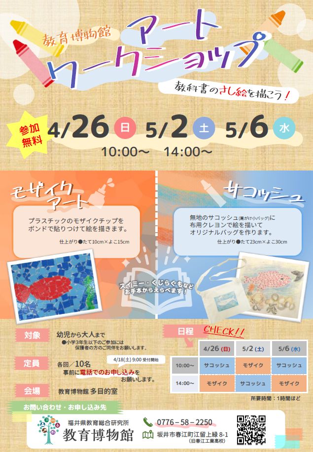 <お知らせ>アートワークショップ 4月26日 5月2日 5月6日