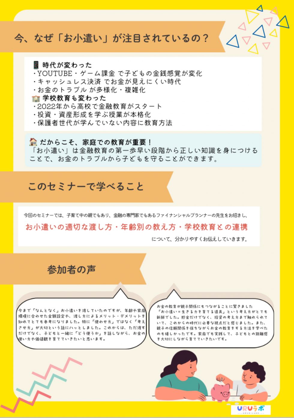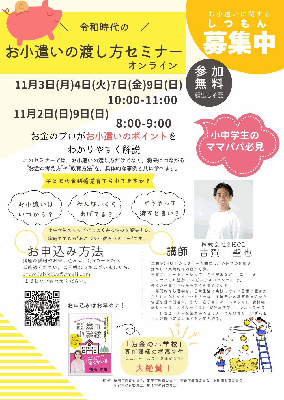 <お知らせ保護者>お小遣いの渡し方セミナー 11.2~9