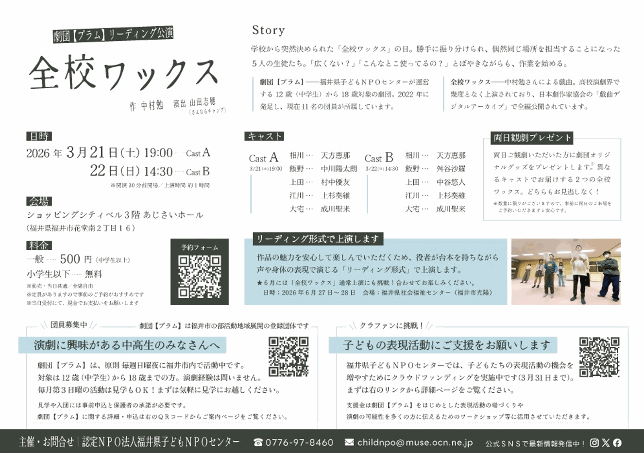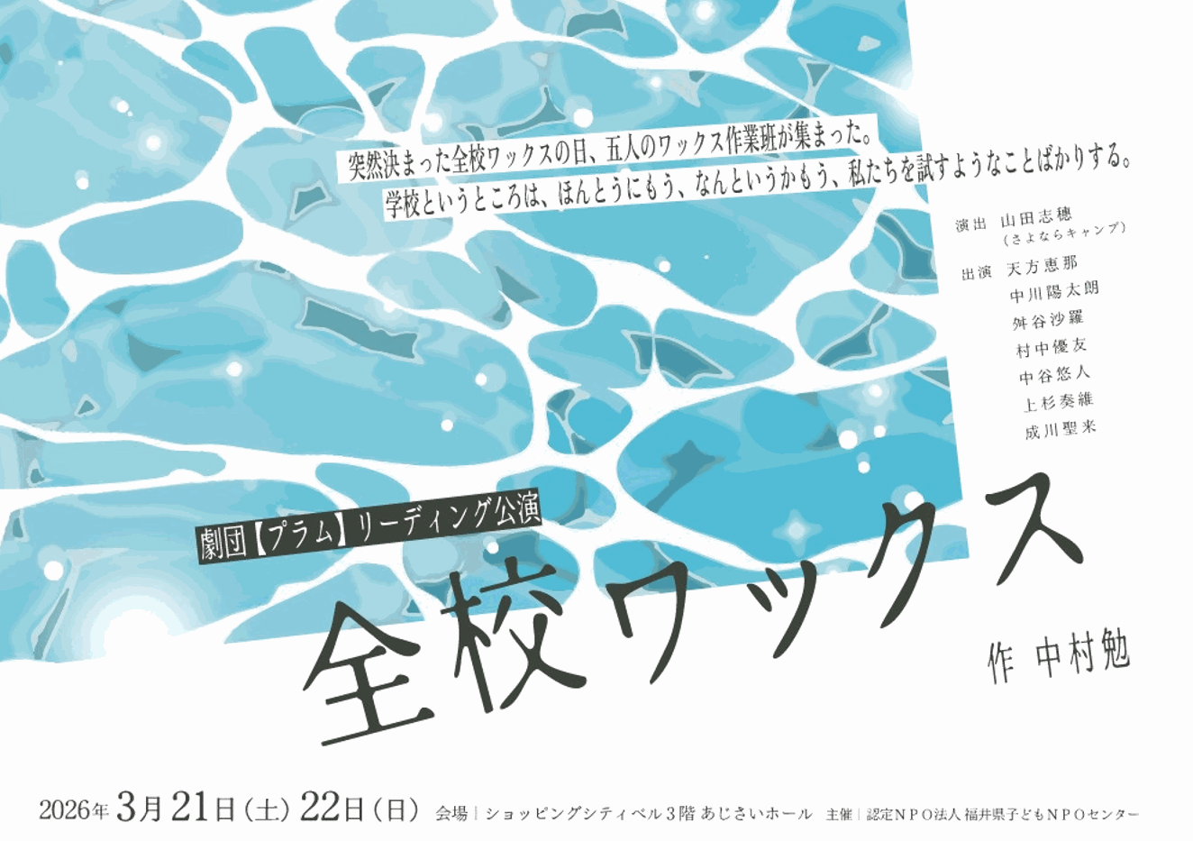 <お知らせ>中高生劇団 劇団【プラム】第4回公演「全校ワックス」 3/21、22