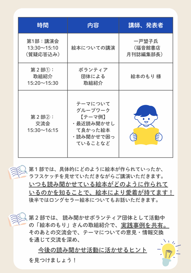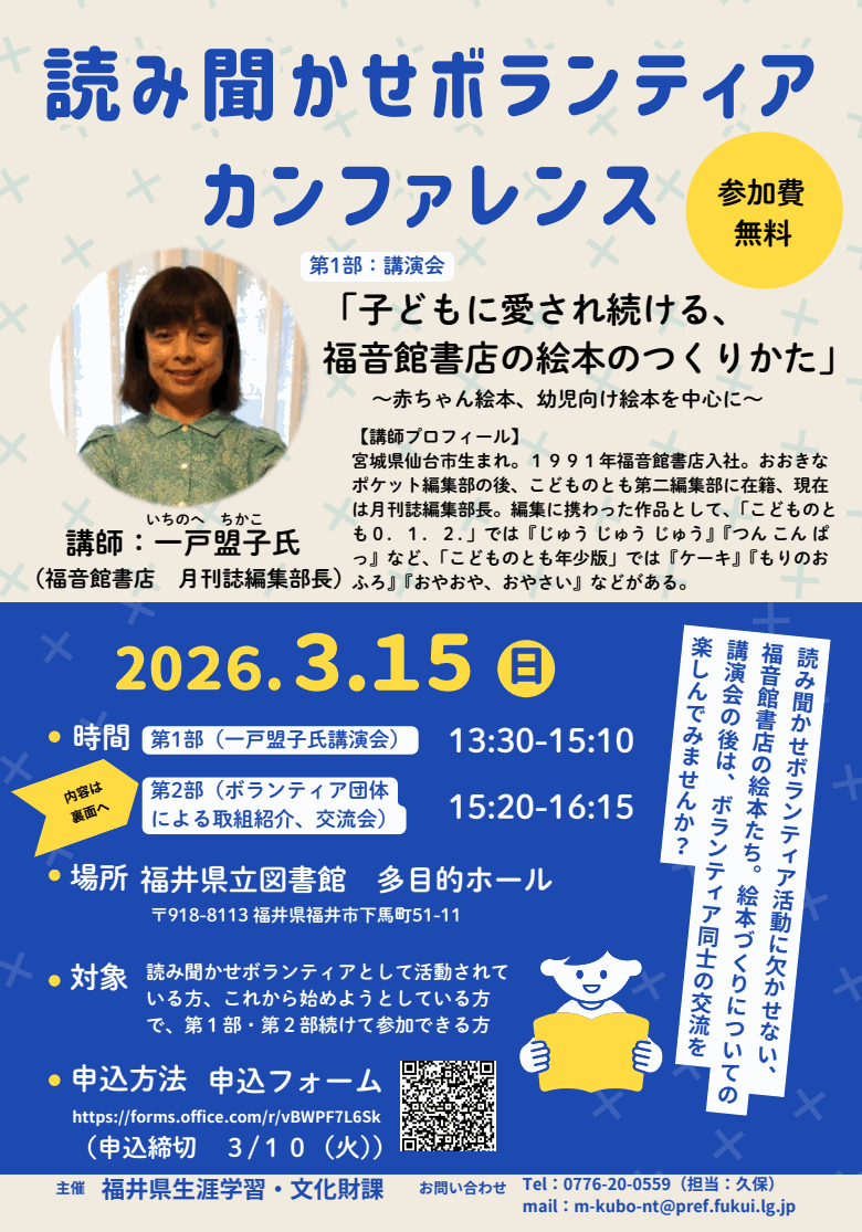 <お知らせ保護者>読み聞かせ担い手養成講座の開催(3/15)