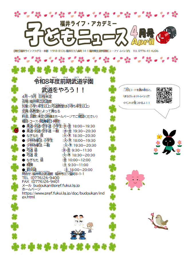 <お知らせ>福井ライフ・アカデミー 子どもニュース4月号 ~9月