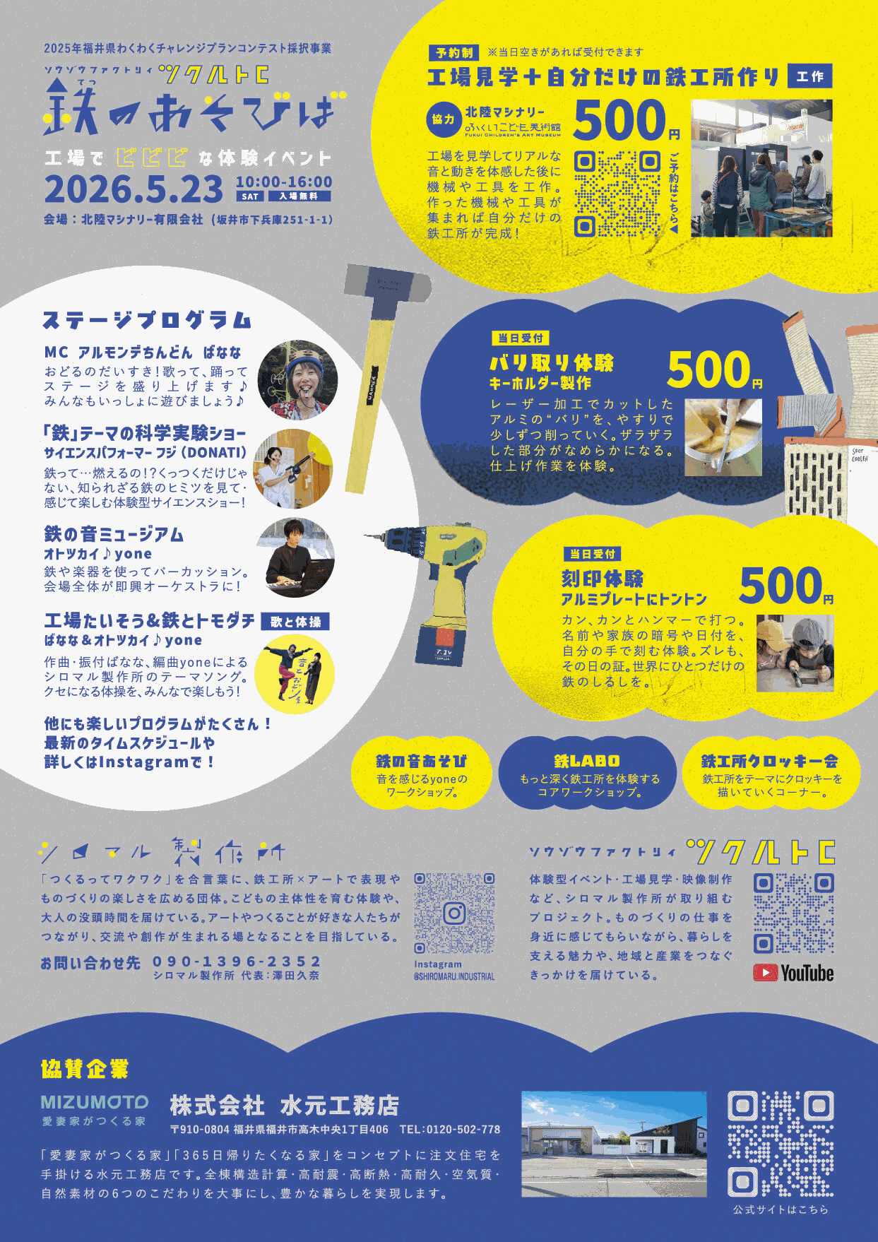 <お知らせ>ソウゾウファクトリィツクルトコ「鉄のあそびば」工場でビビビな体験 5/23