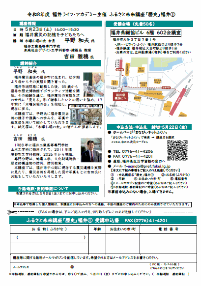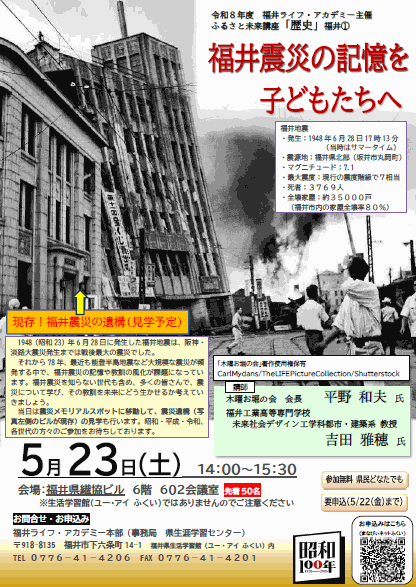 <お知らせ>「福井震災の記憶を子どもたちへ」の開催 5/23