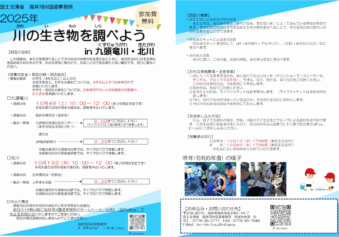 <お知らせ>川の生き物を調べよう in九頭竜川・北川 10.13