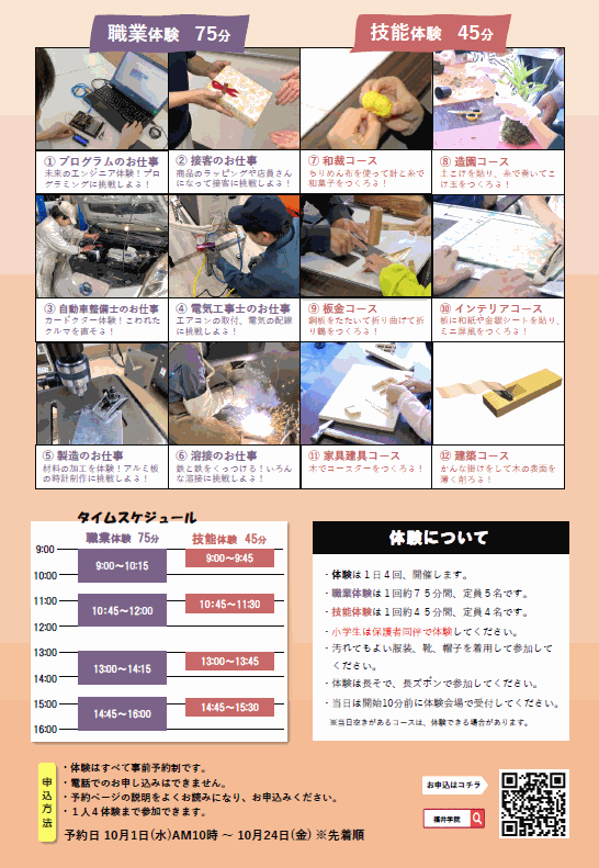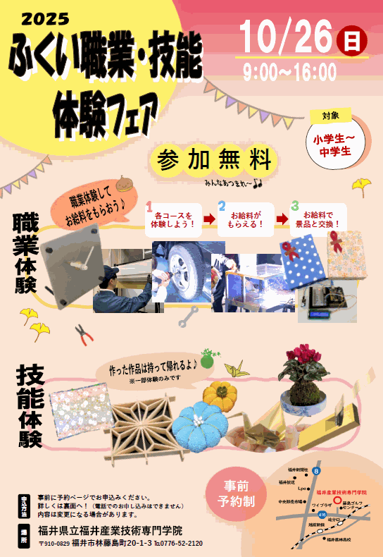 <お知らせ>ふくい職業・技能体験フェア(10/26)