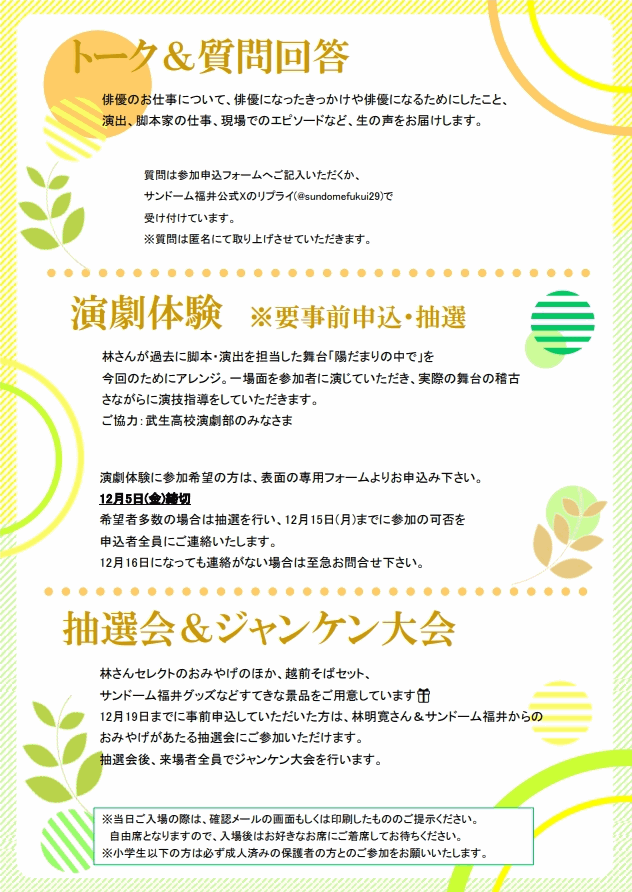 <お知らせ>林明寛トークショー 12/21(サンドーム福井)