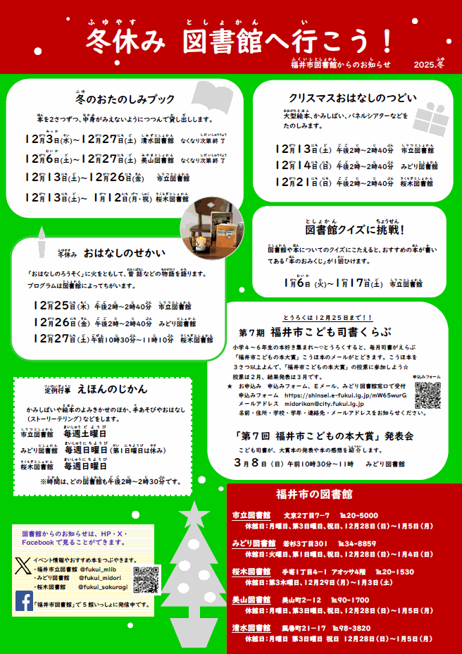 <お知らせ>冬休み 図書館へ行こう(福井市図書館)~1.17