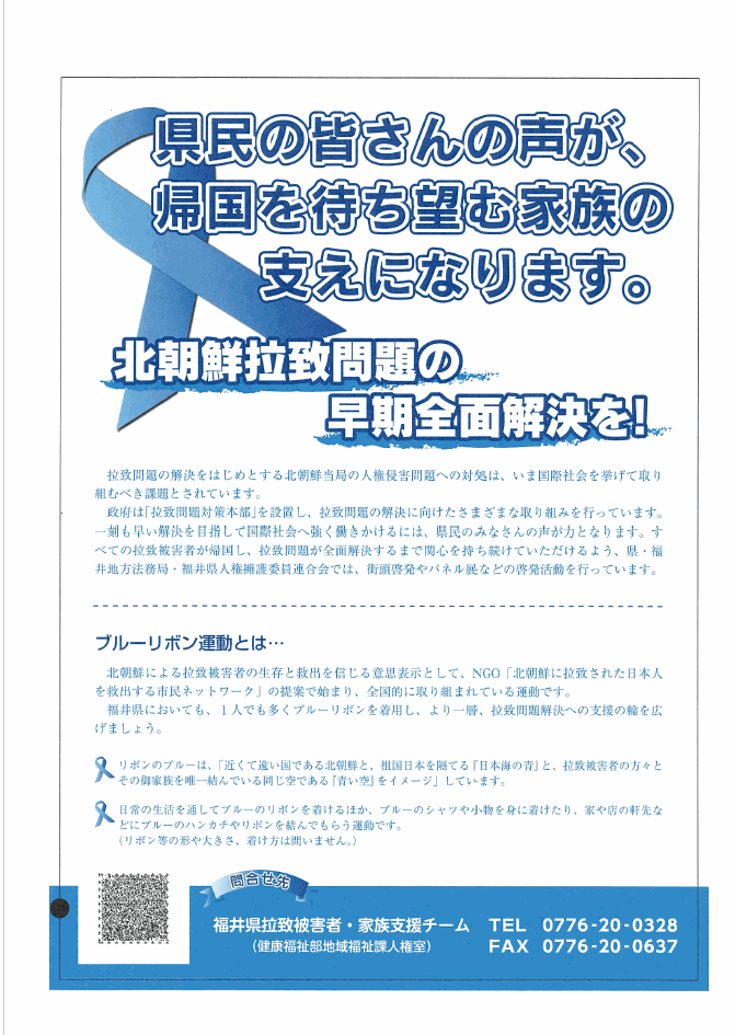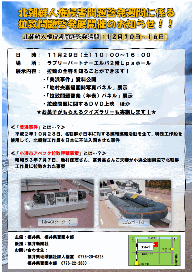 <お知らせ>拉致問題啓発展のお知らせ(福井県・福井県警察本部)11/29