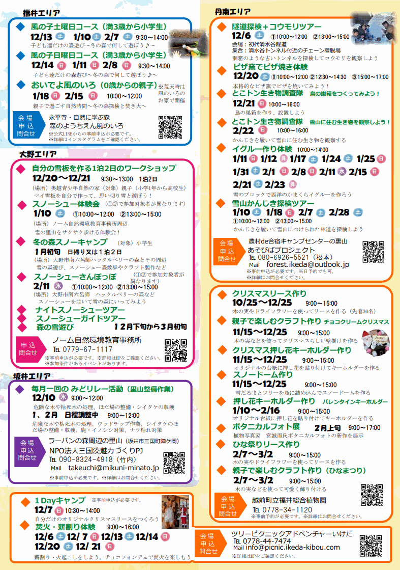 <お知らせ>「福井ふるさと学びの森・海湖」冬イベントの御案内~2月