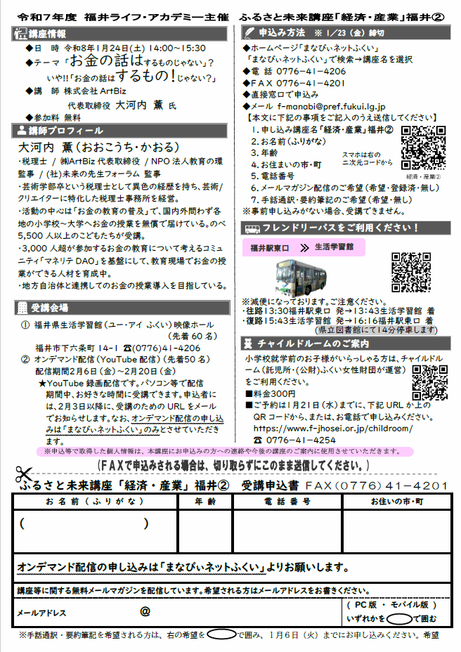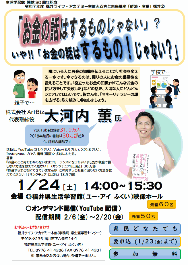 <お知らせ>「金融リテラシー」に関する講演会 1/24