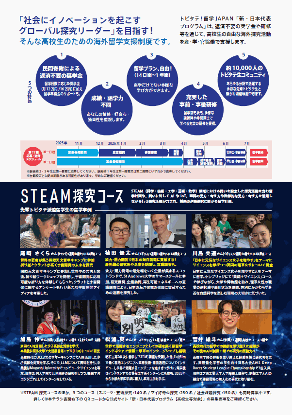 <お知らせ中学3年生>トビタテ!留学JAPAN 新・日本代表プログラム【R8高校生対象】