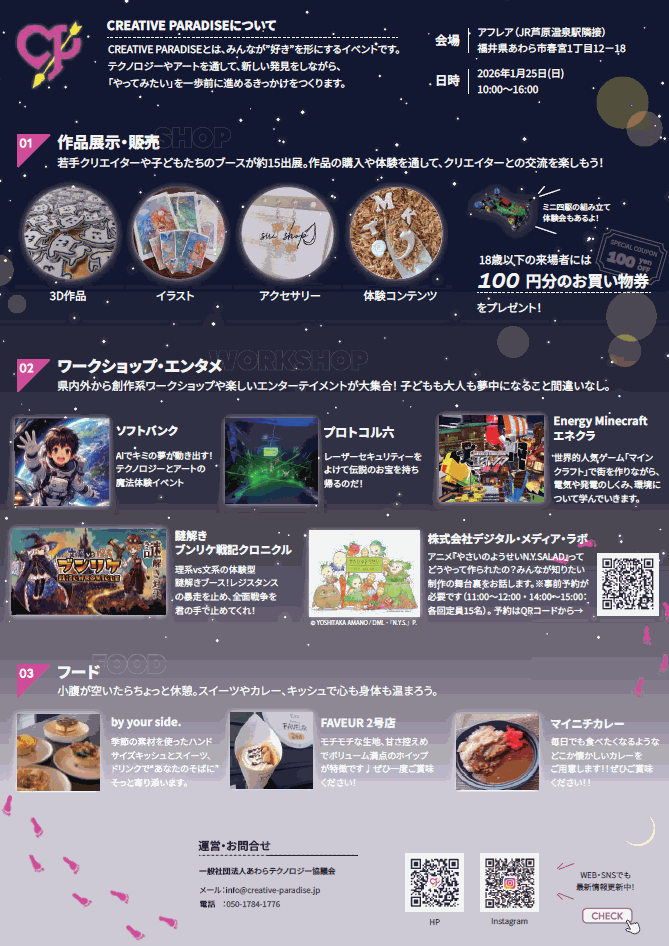福井市小中学校チラシ 詳細表示の場合〈お知らせ〉をタップしてください。
