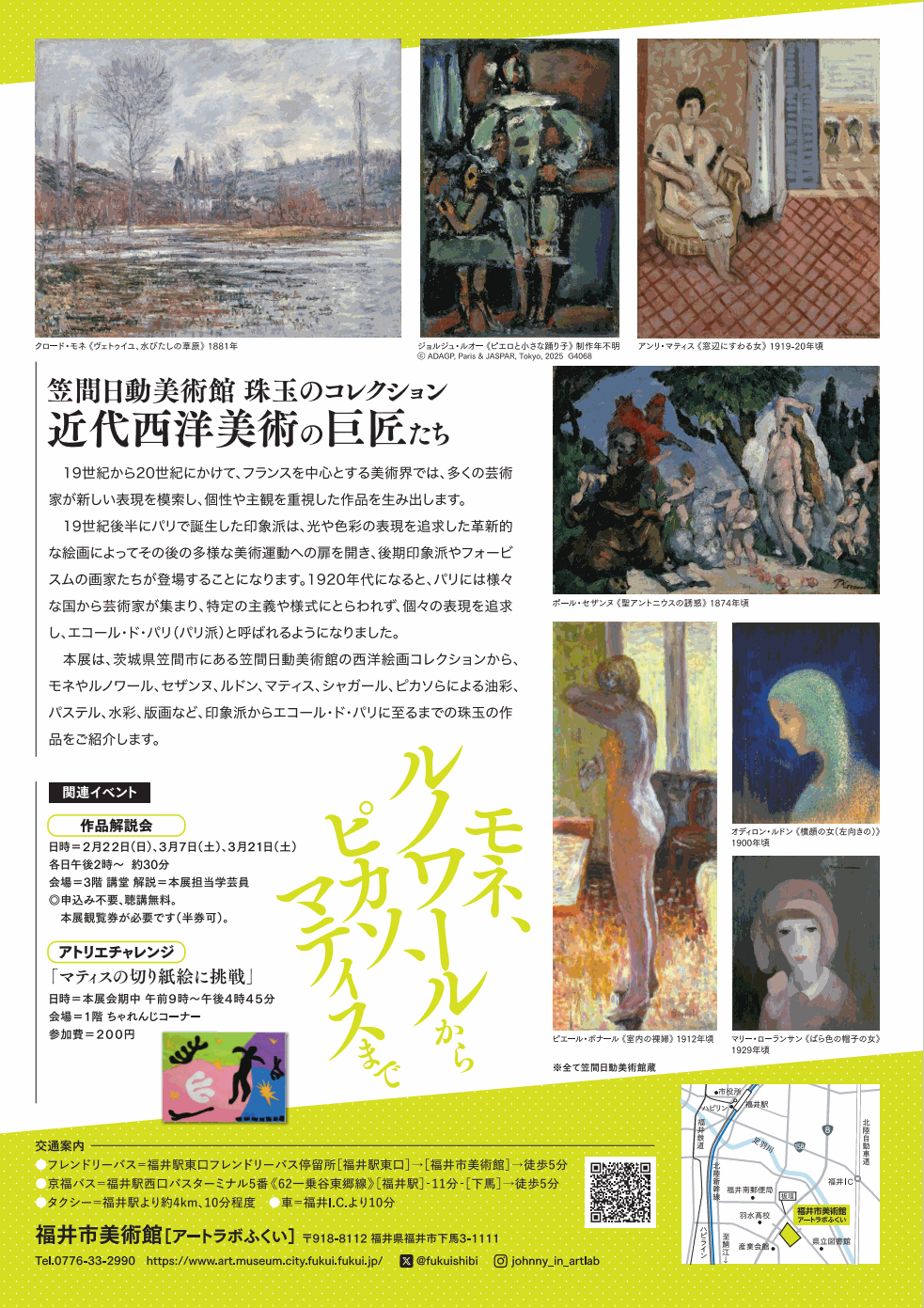 <お知らせ>美術展企画展「笠間日動美術館 珠玉のコレクション 近代西洋美術の巨匠たち」の開催 2/14~3/29