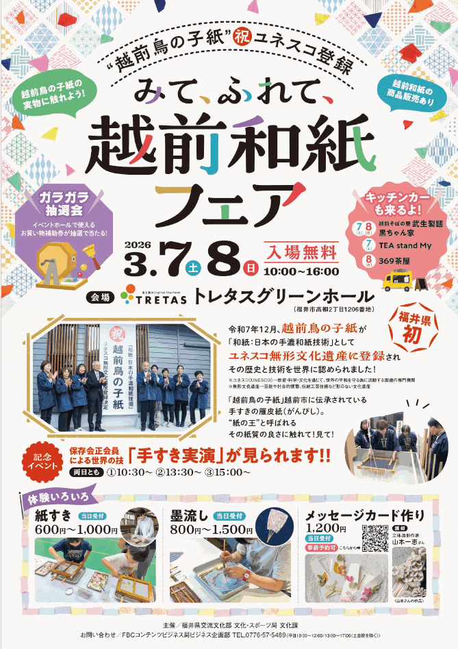 <お知らせ>「みて、ふれて、越前和紙フェア」 3/7・8