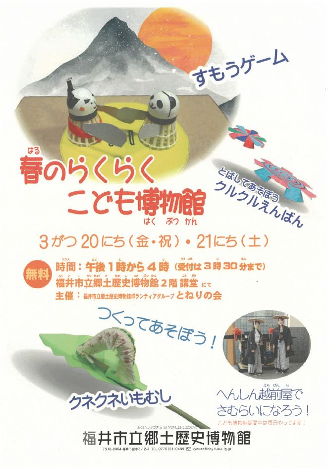 <お知らせ>春のらくらくこども博物館 3/20・21