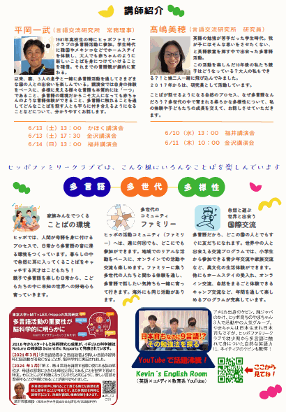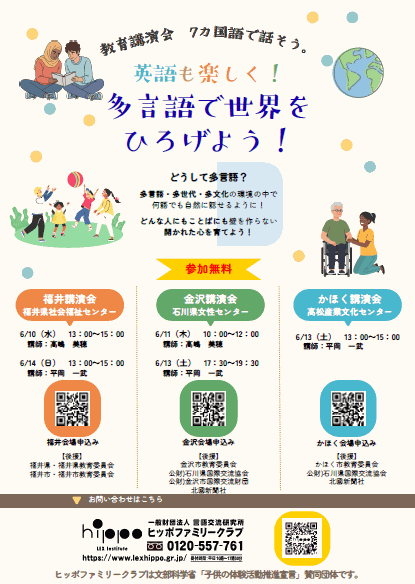 <お知らせ>ヒッポファミリークラブ 教育講演会 6/10 6/14