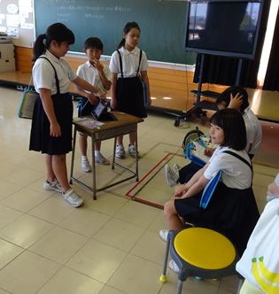 本日、3限目に3年生対象「ひまわり教室」が開催されました。 警察から講師を招いての実施となりました。 身近なことを題材に 「これっていいのかな?」の問いに思い思いの意見を