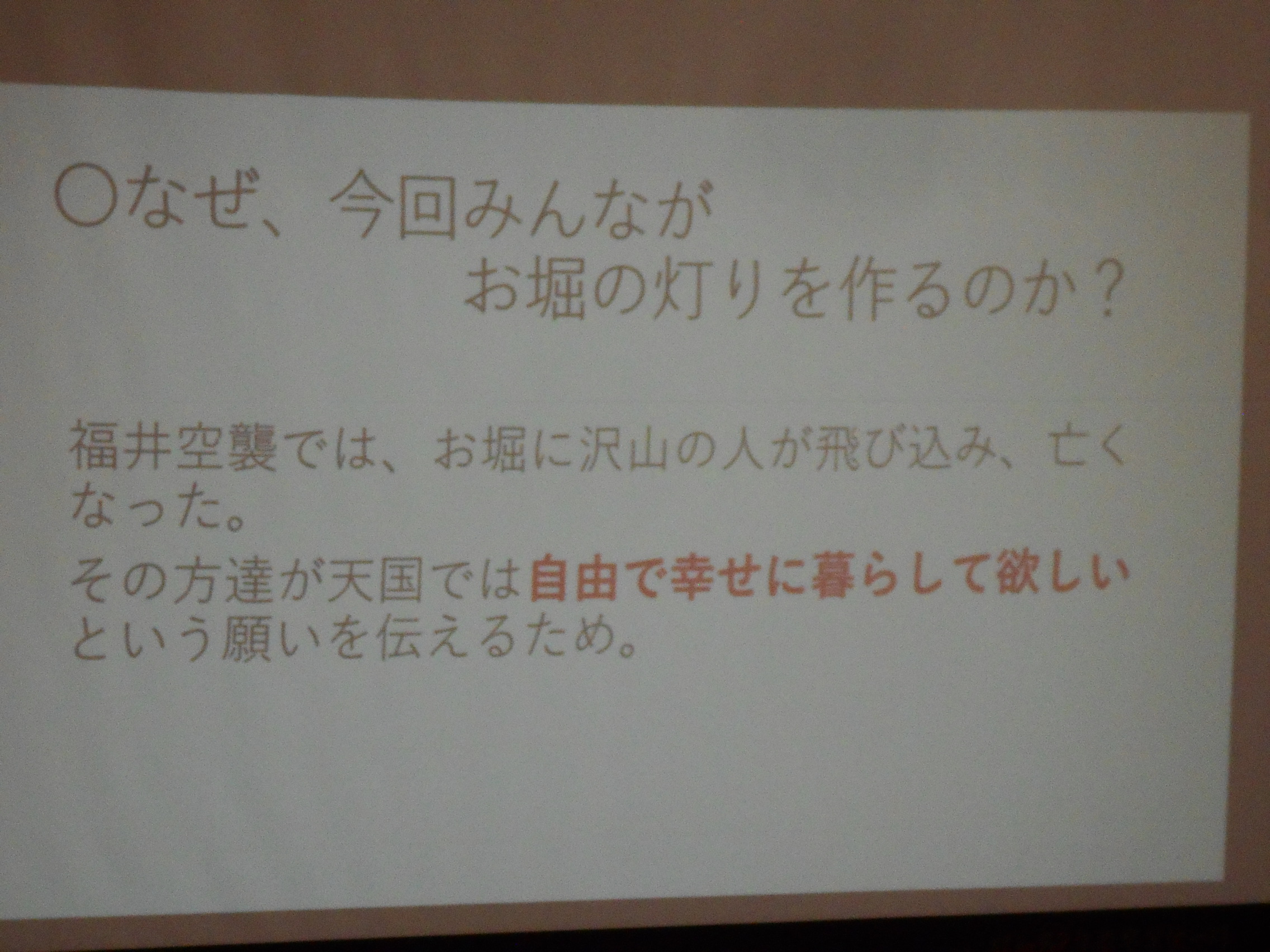 | [画像:DSCN1495.jpg][画像:DSCN1497.jpg][画像:DSCN1494.jpg] 7月20日(土)にお堀の灯り点灯式が行われました。 鎮魂の祈りと希望の灯りです。 いつもながら、幻想的な雰囲気にいろいろ想いを |