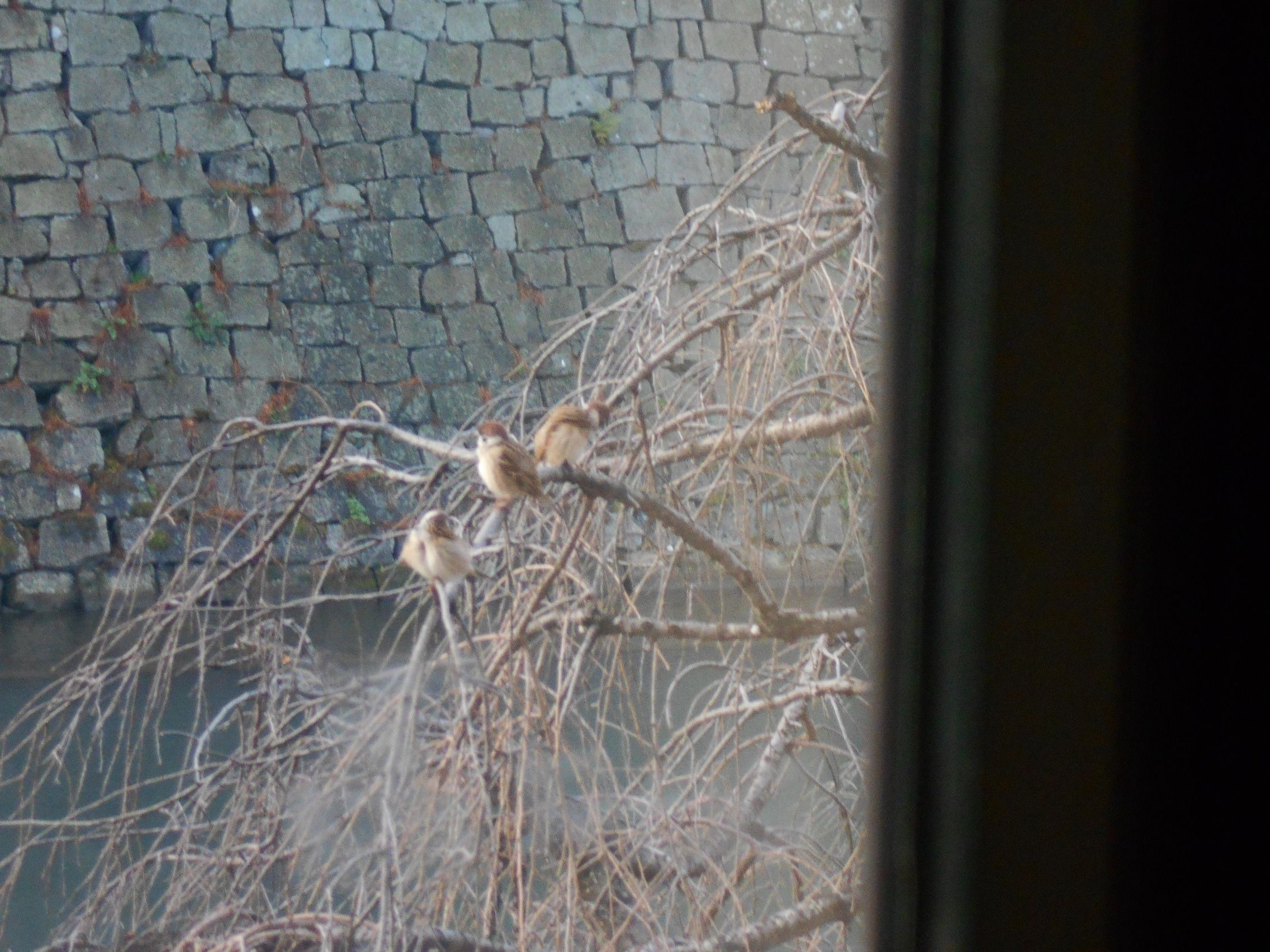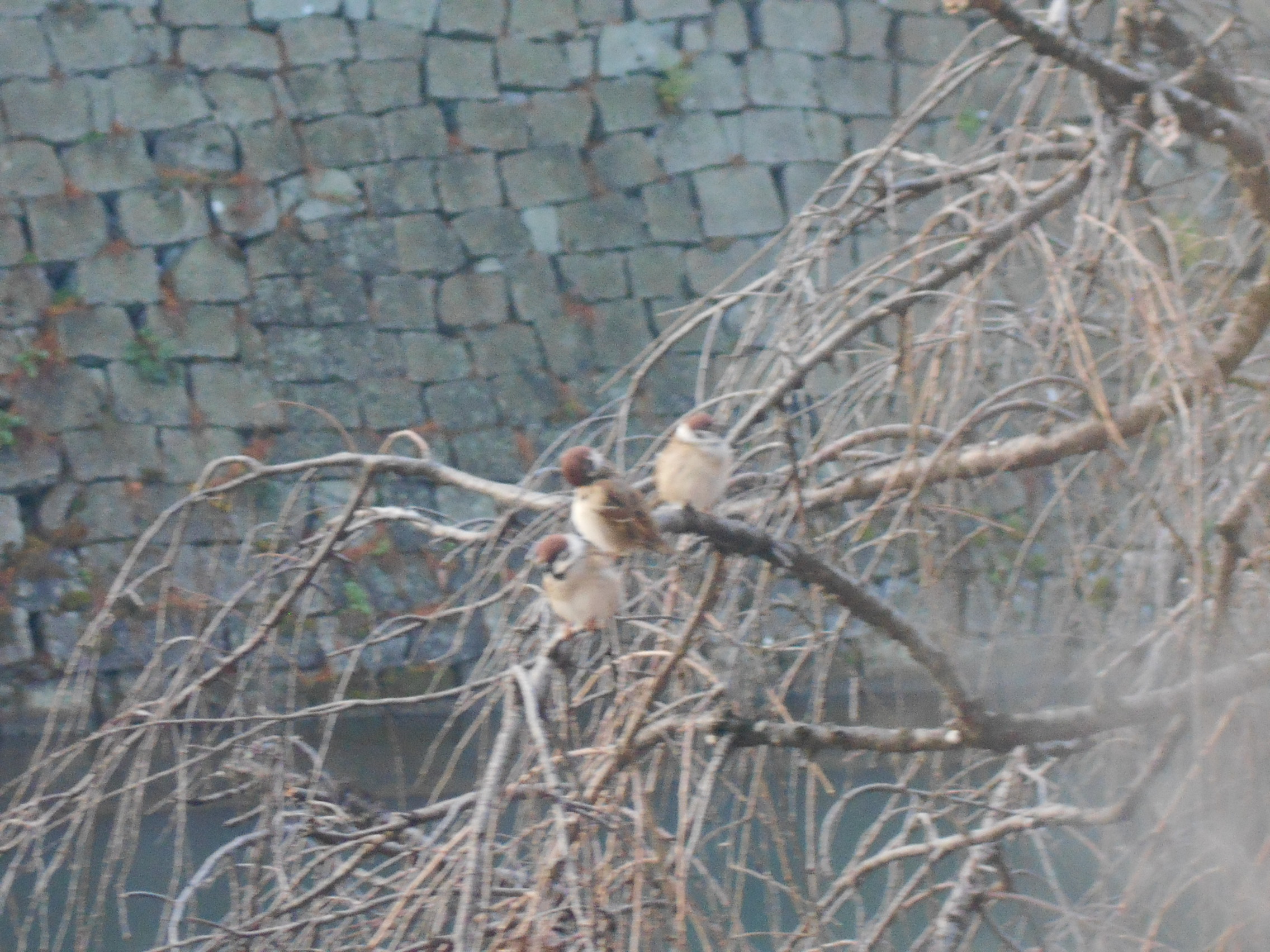 最近、すずめたちは、群れをなし、よく桜の木で休んでいます。