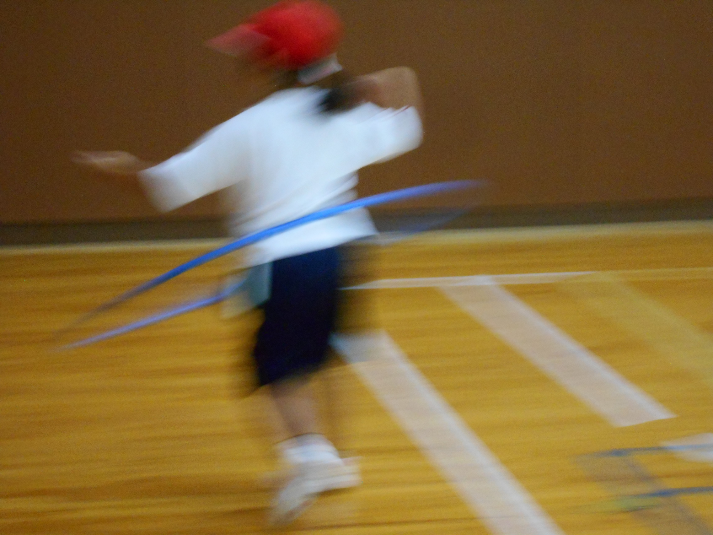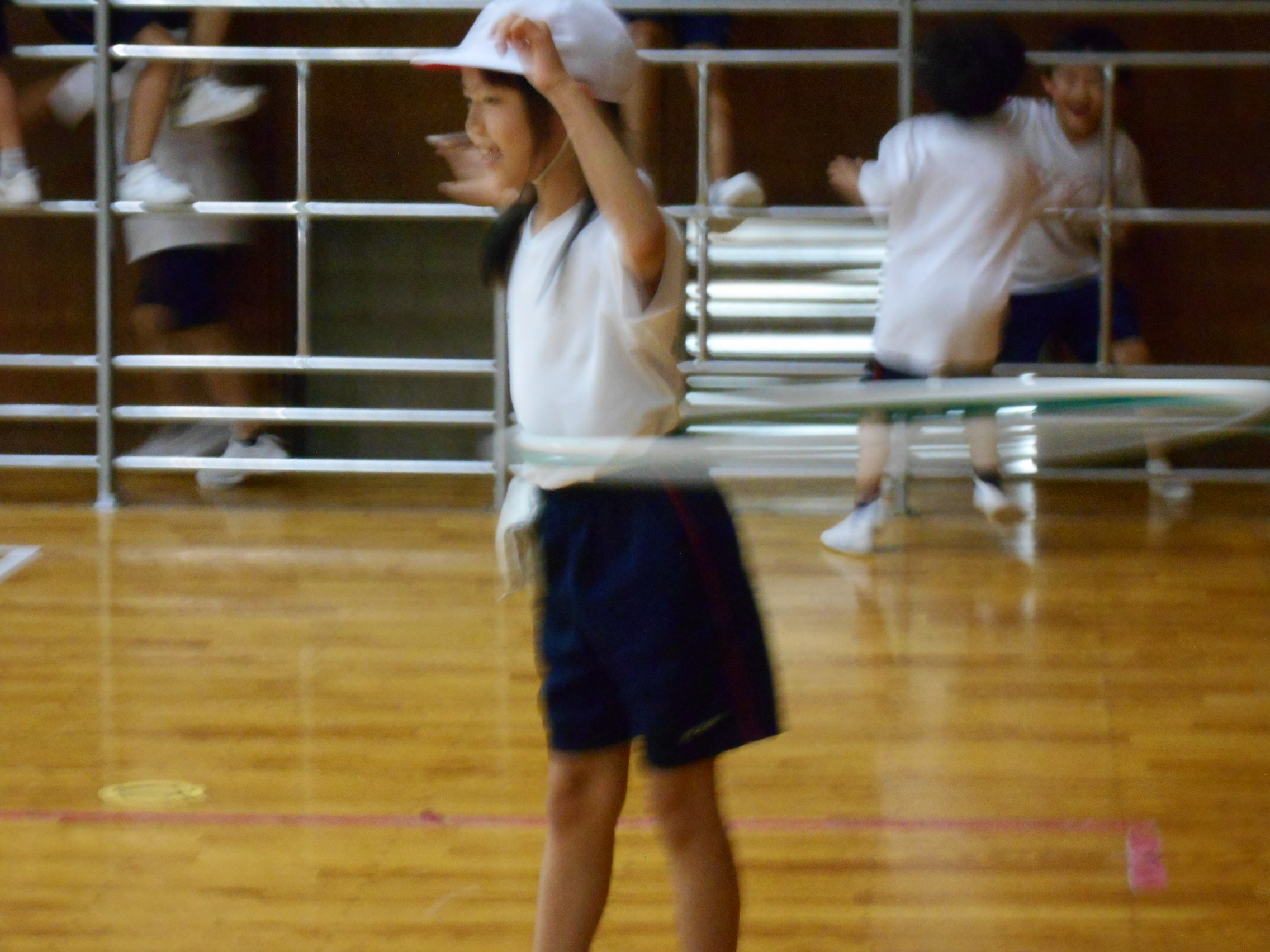 2年生は、フラフープを使って、上手に活動できる子がたくさんいました。