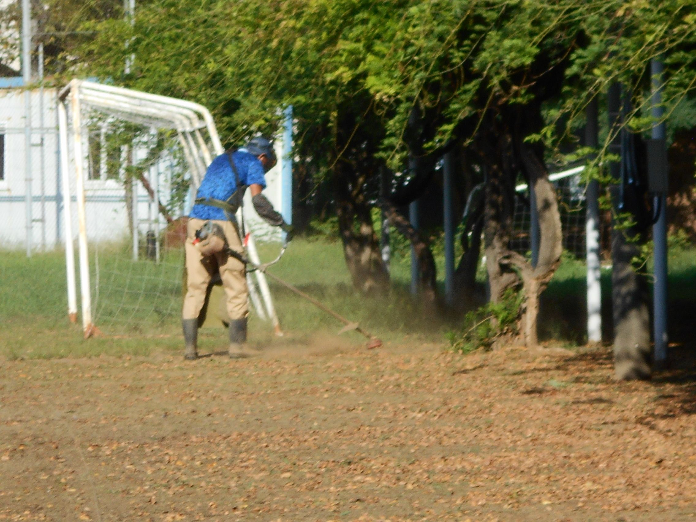 順化小のグラウンドは、水はけが悪く、雑草の増殖も早く、除草がなかなか追いつきません。
