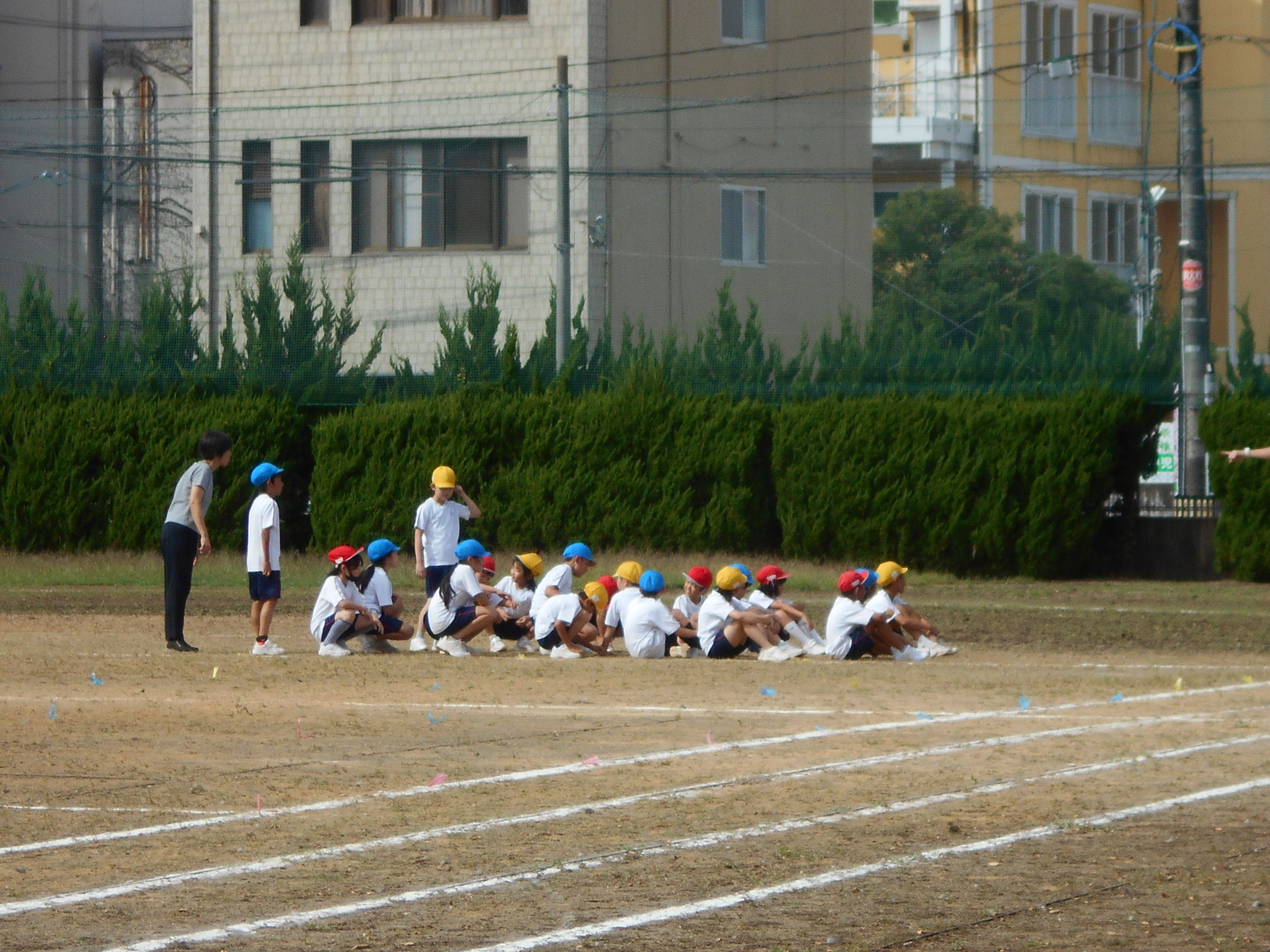 2限目のグラウンドでは、グラウンドコンデションもよく、徒競走の練習をしています。