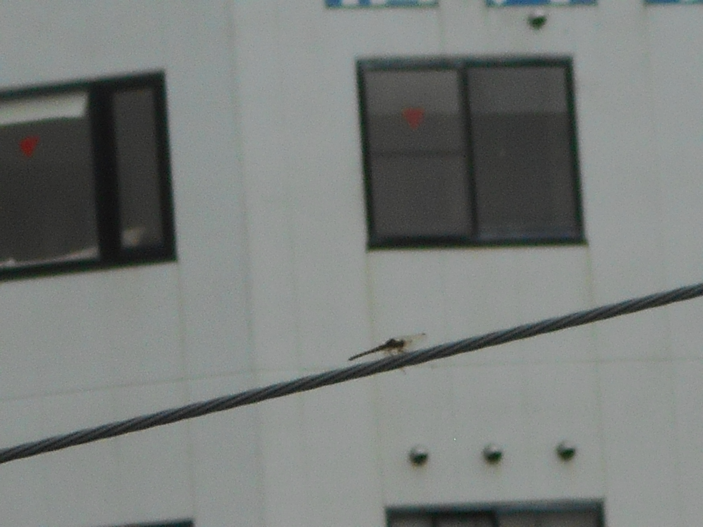 ふと、外を見たら、職員室から見えたスズメたちが、赤とんぼに代わっていました。