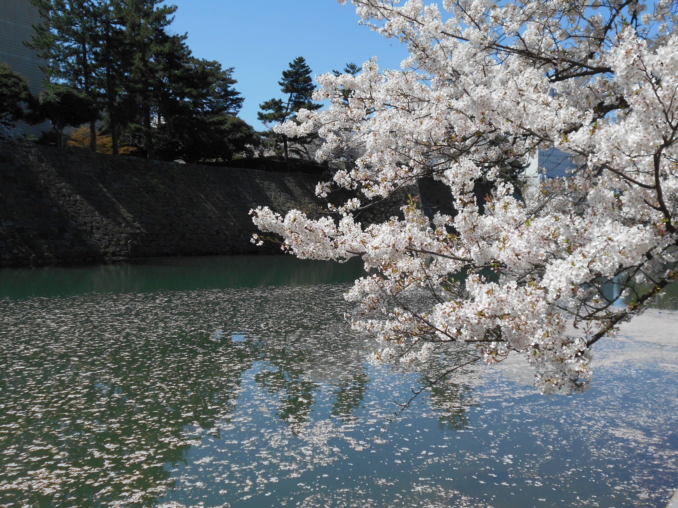 お堀に浮かぶ花びらは、なんとも風情があります。