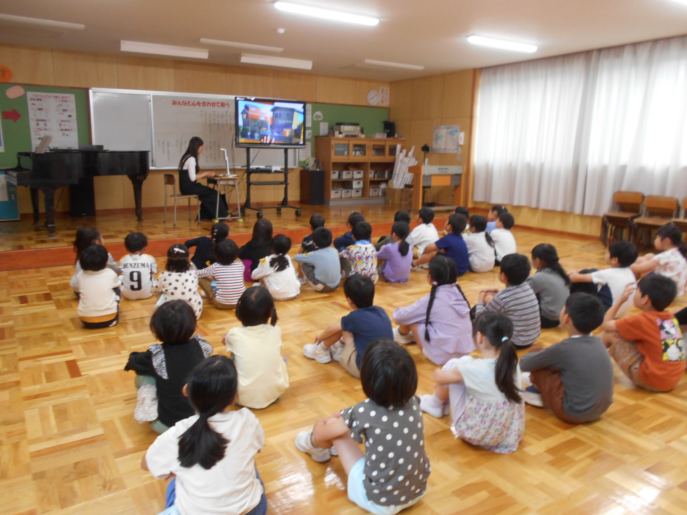 1,2年生は、じっくりと、とてもよい姿勢で集中して聞いていました。