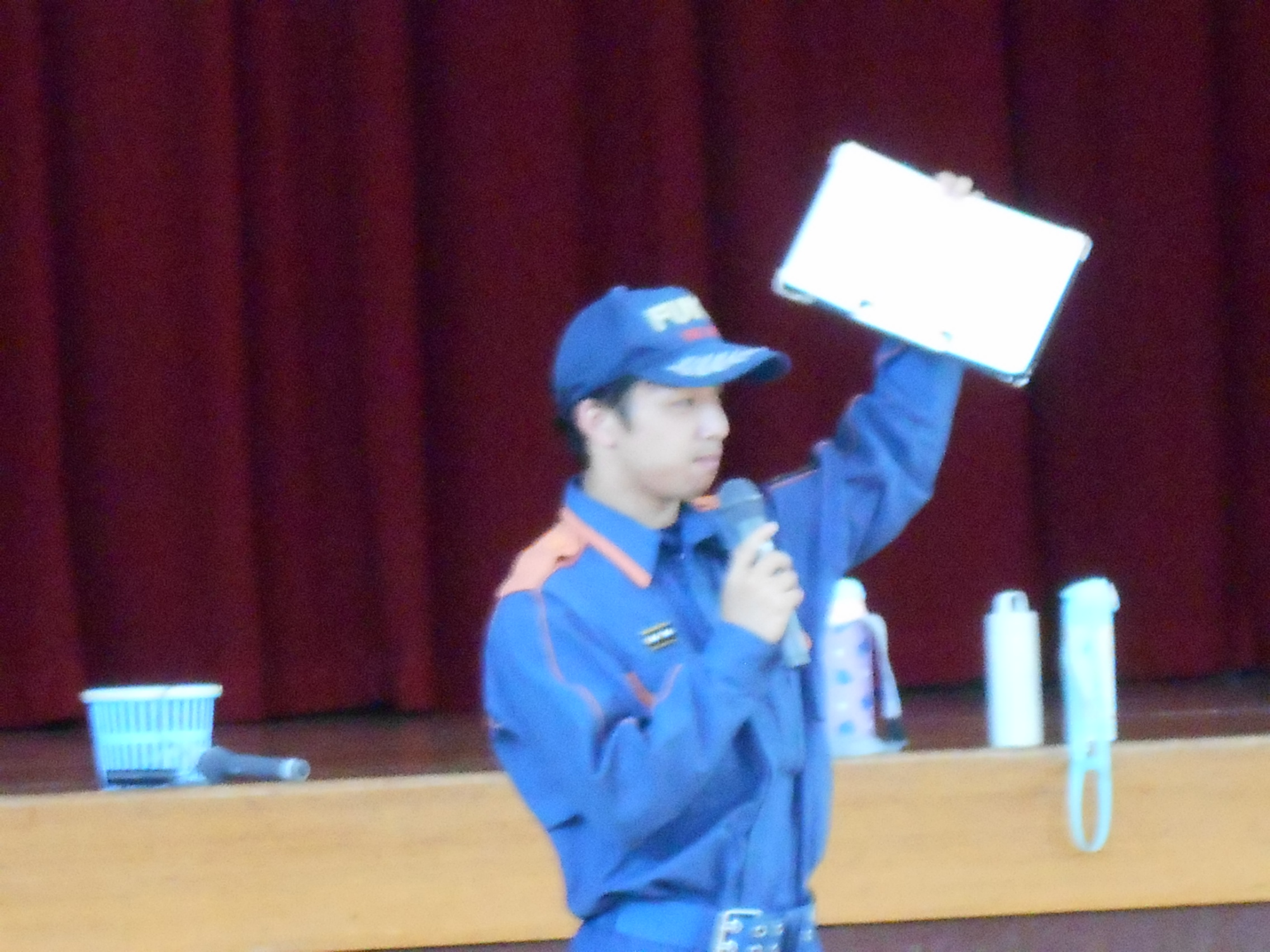 避難後は、縦割り班で話し合い、発表をし合いました。