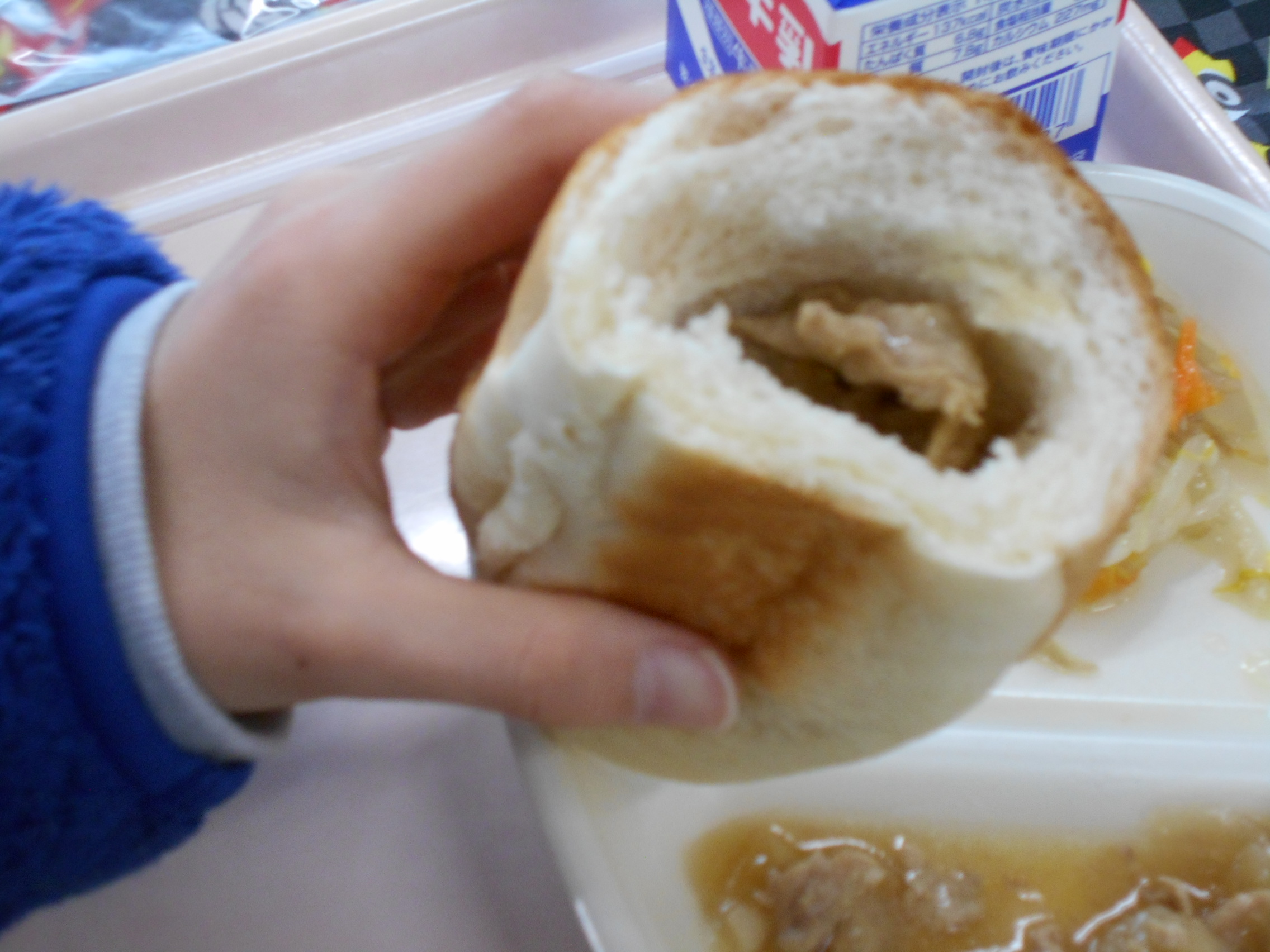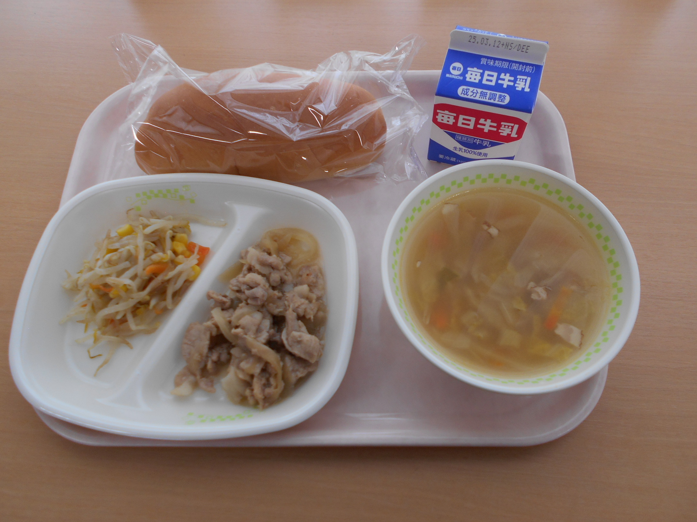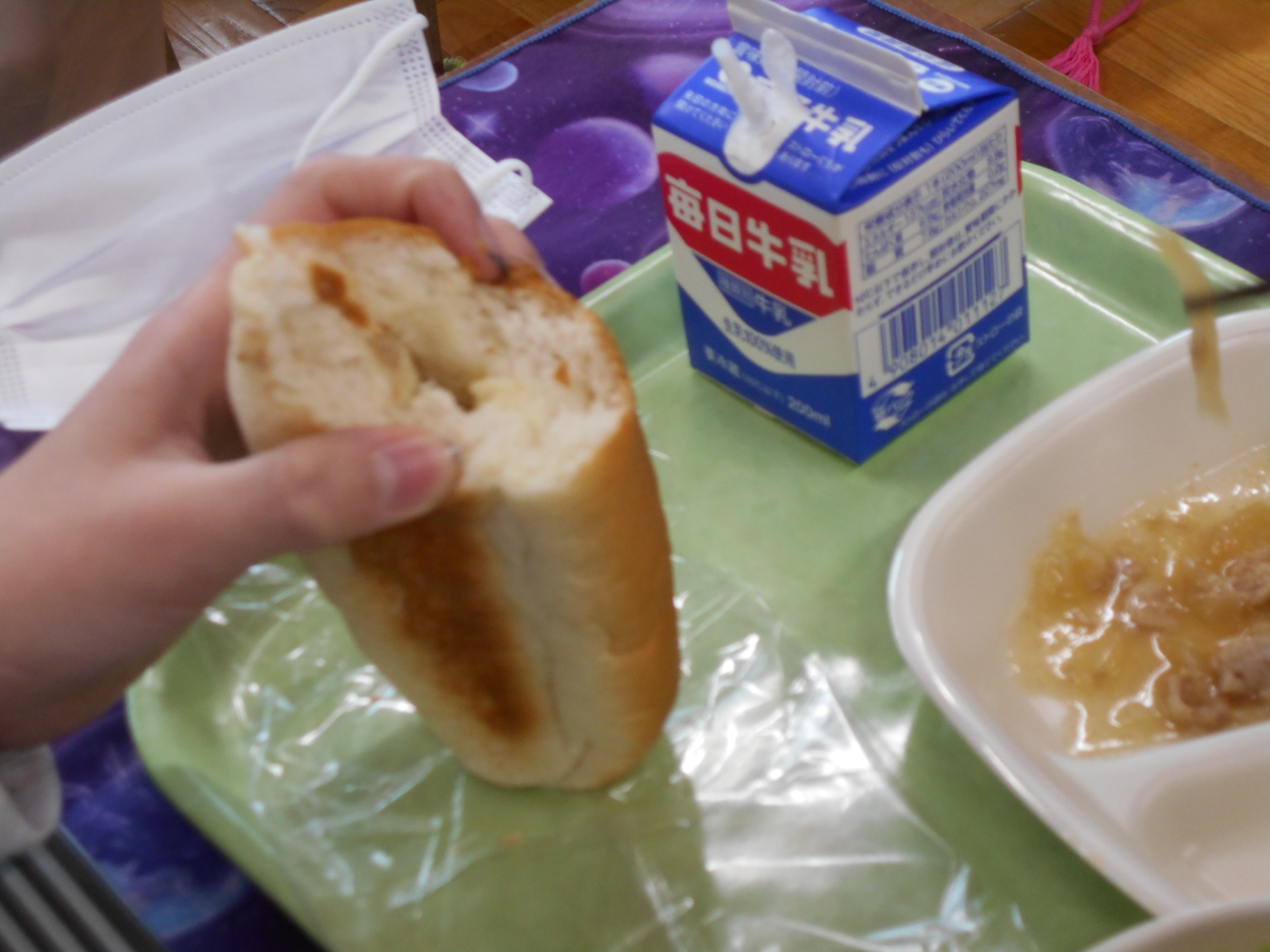 今日の給食は、久しぶりのパンでした。