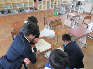 | 午前中に、公民館と連携して 「三世代交流体験教室」を行いました。 1~4年生は、 「上文殊コロッケ作り」「徳光カルタ」「木工クラフト」「薪割り体験」 の4つを体験しました。 |