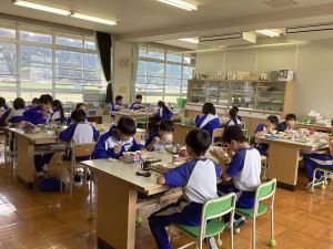 | 本格的に授業が始まりました。 1年生は、保健室で身体計測。 背が伸びてたかな。 3年生は英語の授業。 アルファベット発音時の口や舌の動きを体で表現しました。 5・6年生は合 |