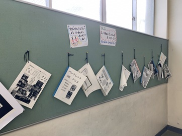 南校舎階段踊り場に、6年生が作成した「おすすめ集」が掲示されています。