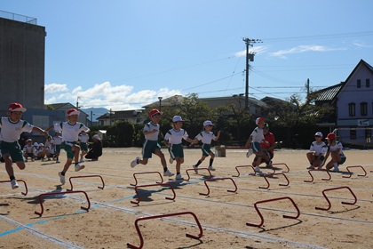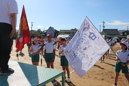 多くの保護者の皆さま、地域の方々に見守られながら、子どもたちはのびのびと競技や応援、自分の役割に取り組むことができました。