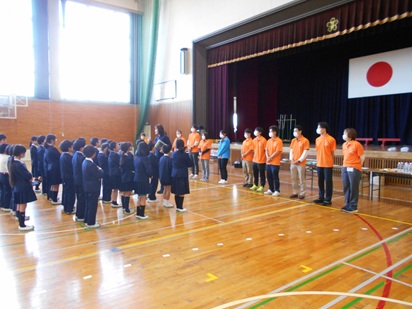 | 2学期2回目のあいさつ運動が行われました。 朝早くから、寒い中小学校に集合してくれた中学生のみなさん、ありがとうございました。 明るいあいさつの声が玄関に響き渡り、さわ |