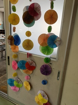 4年生教室横の廊下に、春を呼びそうなステキな飾りが飾られています。 4年生がお手紙を届けたお年寄りの方からのお返事とプレゼントだそうです。 応援のメッセージがうれしいで
