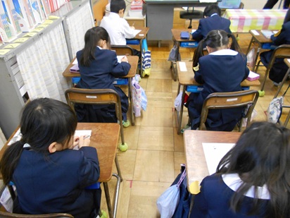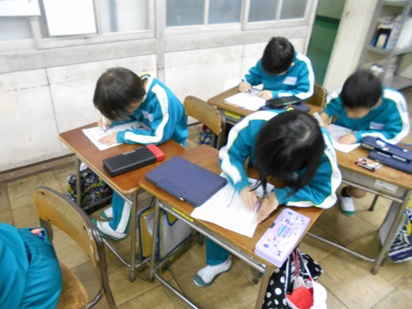 1年生は、宿題を集めていたり、今年の目標を書いていたりと頑張っていました。