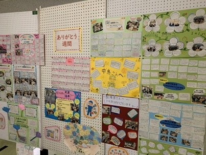 いこいの広場には、子どもたちが心を込めて作成した「ありがとう」のメッセージが掲示されています。