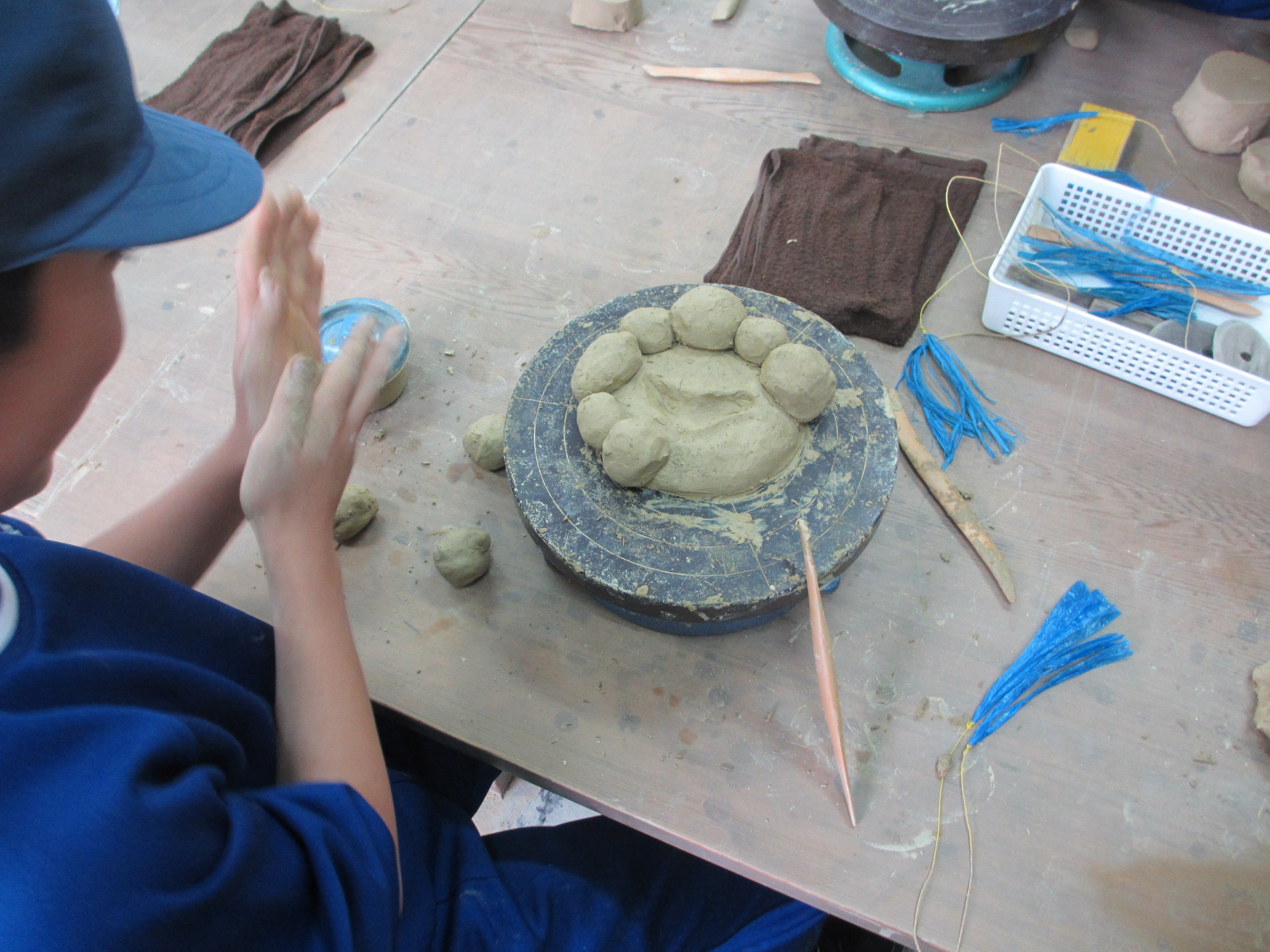 手ひねり体験では、越前土を使って茶碗や湯のみ、置きものなどを作りました。