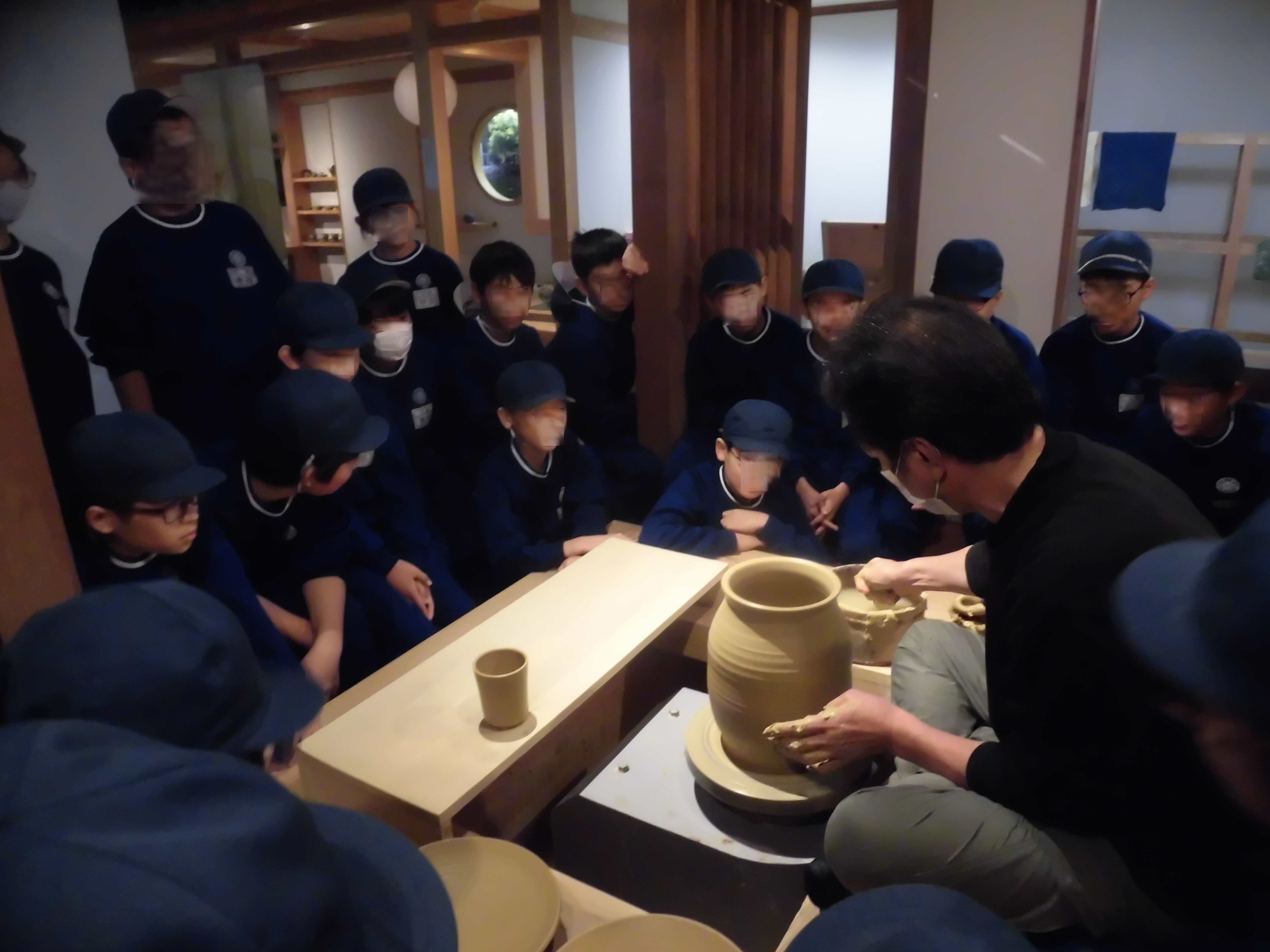 資料館では、越前焼の窯の中がどうなっているか説明を聞いたり、越前焼の職人さんによる実演を見たりしました。