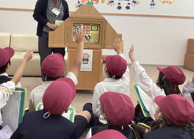 | 10月1日(水)に2回目の町たんけんを行いました。 グループに分かれて、地域のお店や施設を訪問しました。 訪問先では、商品の説明を聞いたり、インタビューをしたり |