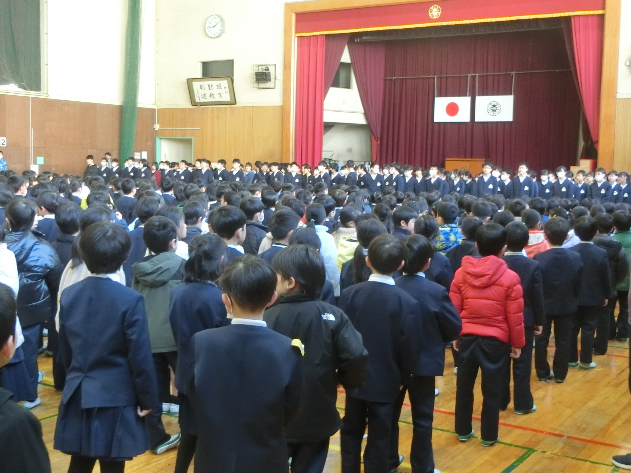 | 新年、明けましておめでとうございます。 15日間の冬休みが終わり、木田小は寒さに負けず元気に登校する子どもたちの声であふれていました。 全校朝礼では、校長先生から新年の |
