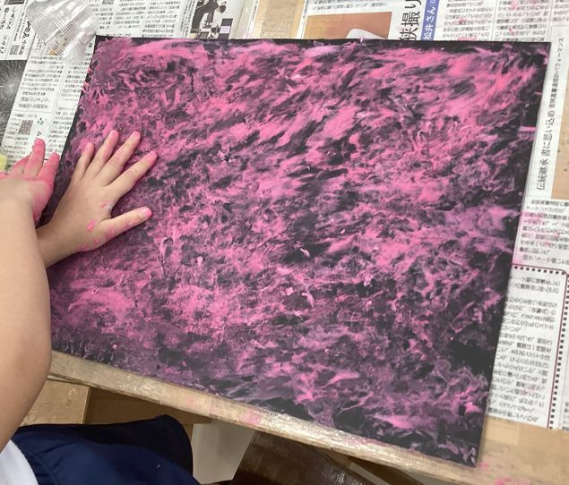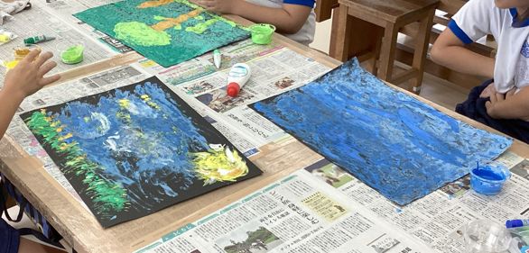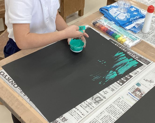9月11日、12日に図工の時間で、「とろとろ絵の具」使って作品を制作しました。