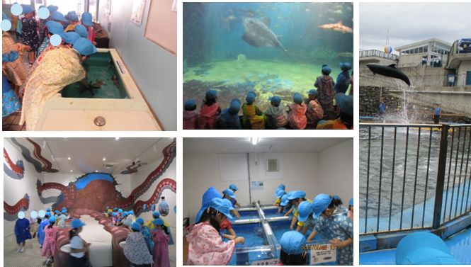 ドクターフィッシュやふれあい館などで魚に触れたり、イルカショーを見たりしました。