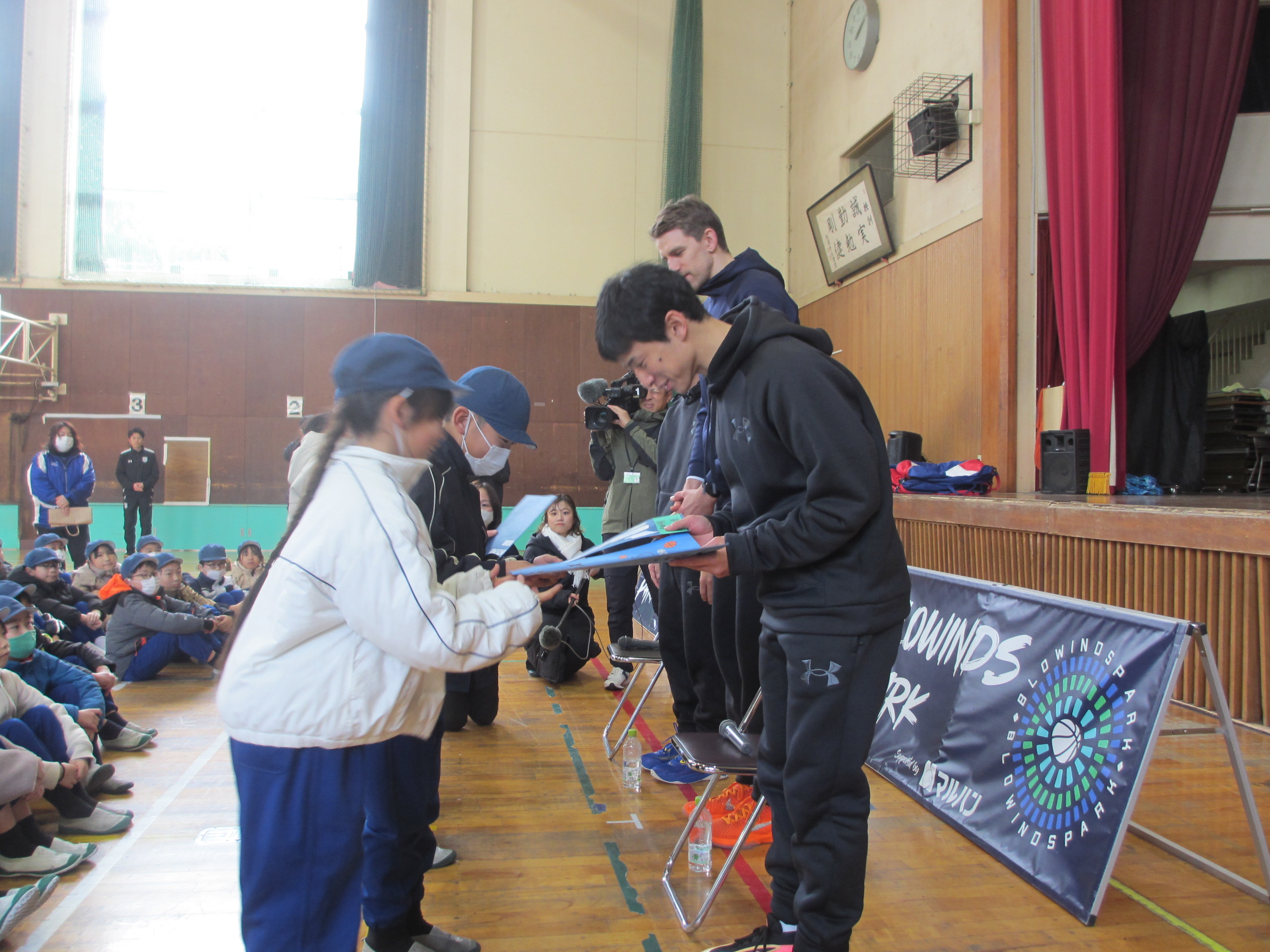 21日、福井ブローウィンズの細谷将司選手とラポラス・アイヴァナーカス選手にお越しいただき、ブローウィンズパークを行いました。