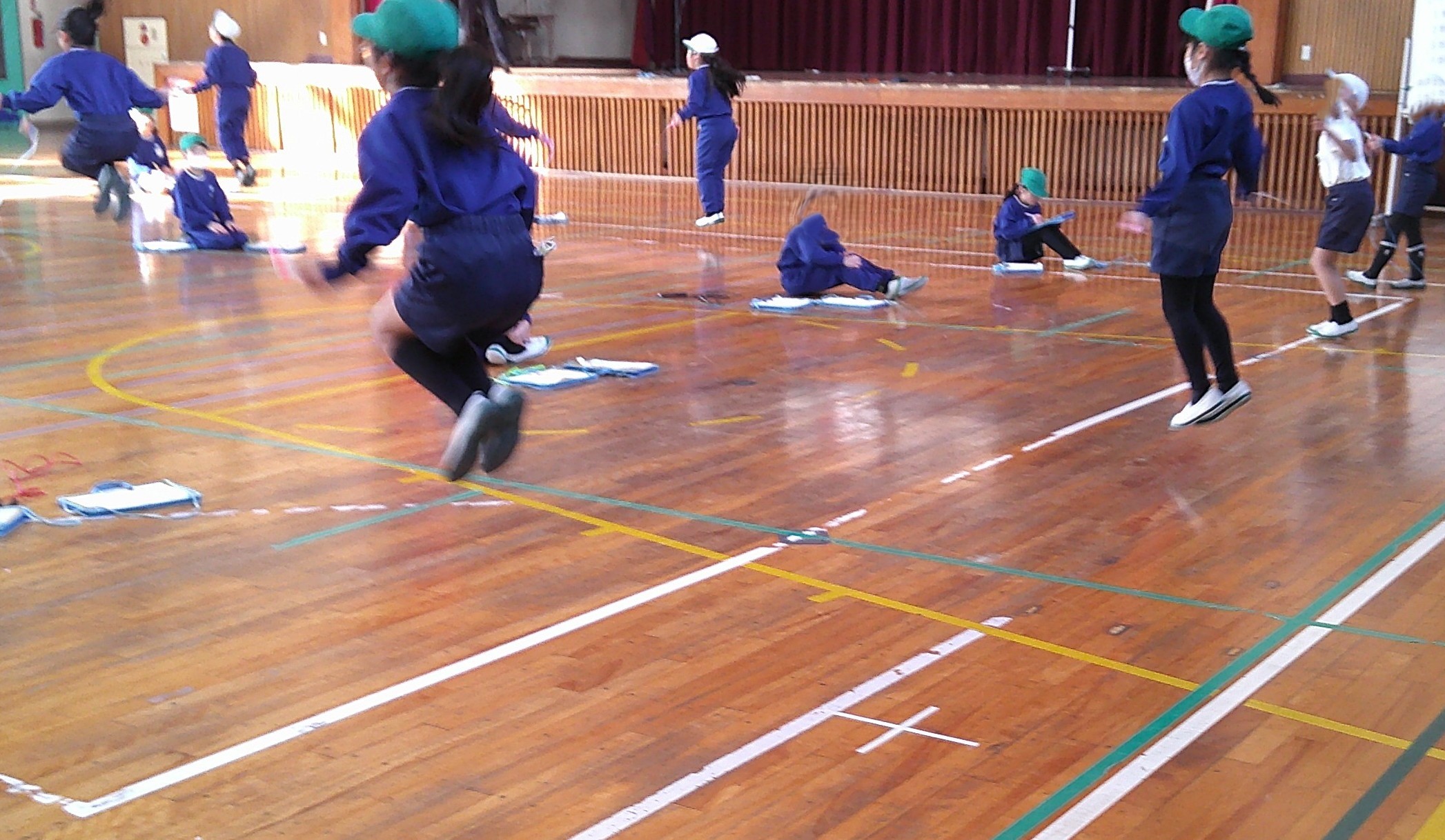 今までの練習よりも 3分間跳び続けられる人が多く、3分はいかなくても、最高記録を出せた人がたくさんいました。 がんばりました。