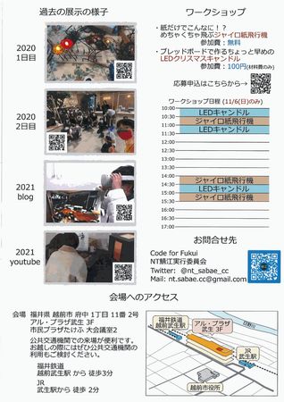 | 「なんかつくってみた」鯖江からのお知らせです。 [画像:20221101_160833_0.jpg][画像:20221101_160910_1.png] |