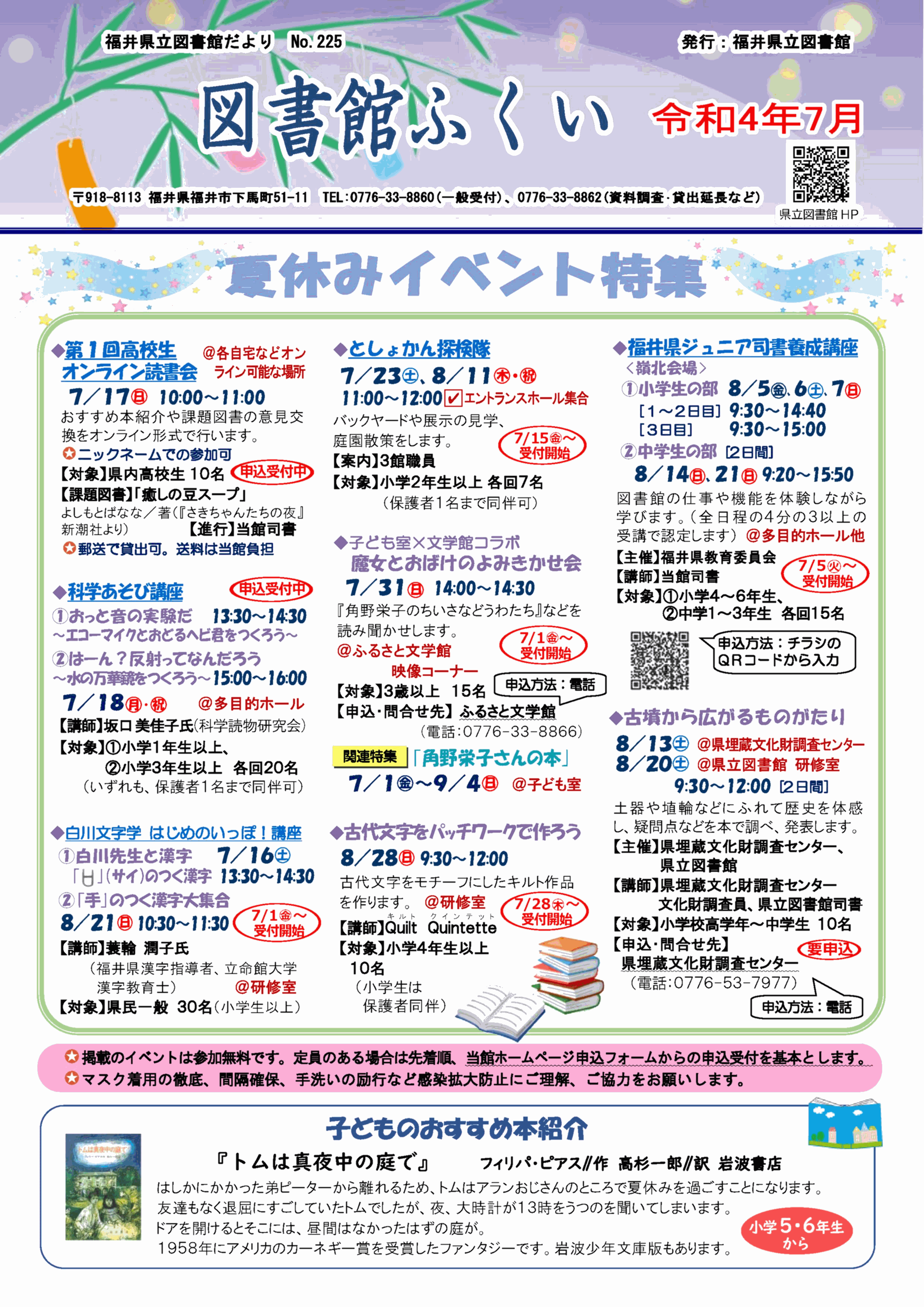 | 福井市郷土歴史博物館、福井医療大学からお知らせが届きました。 夏休み前はイベントのお知らせがたくさん届きます。 紹介していきますので、北辰歳時記をチェックしてください。 |